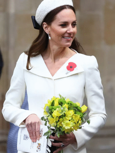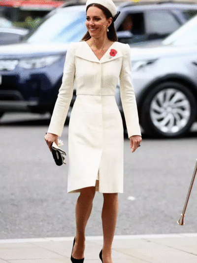 Η Κέιτ Μίντλετον εμφανίστηκε μαζί με την βασιλική οικογένεια στο Λονδίνο για την εκδήλωση μνήμης για την Ημέρα των Ανζάκ στο Αβαείο του Γουέστμινστερ και μας χάρισε ένα από τα πιο βασιλικά σύνολα της χρονιάς. Η Kate συνδύασε ένα λευκό φόρεμα Alexander McQueen με ασορτί καπέλο που είχε μαύρο φιόγκο καθώς και με μαύρα αξεσουάρ γόβες και clutch. Το παλτό φόρεμα McQueen που φορούσε η Kate το εχει ξαναβάλει στο παρελθόν στη βάπτιση της πριγκίπισσας Charlotte, τον Ιούλιο του 2015.