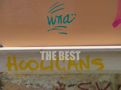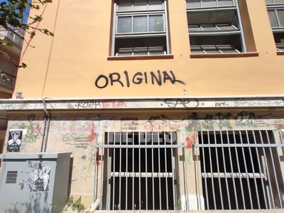 Εντύπωση ωστόσο προκαλεί το γεγονός ότι δεν έχει χρησιμοποιηθεί σε ένα κτίριο που ανακαινίζεται αντιγκράφιτι επίστρωση.