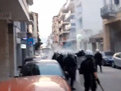 Κατά τη διάρκεια της ειρηνικής διαδήλωσης ομάδα αγνώστων, επιτέθηκε σε διμοιρία των ΜΑΤ, έξω από το Αστυνομικό Μέγαρο.