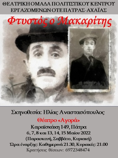 Η θεατρική ομάδα του Πολιτιστικού Κέντρου Εργαζομένων ΟΤΕ Πάτρας-Αχαΐας ανεβάζει ξανά το θεατρικό έργο της Πένυ Φυλακτάκη με τίτλο «Φτυστός ο μακαρίτης», σε σκηνοθεσία του Ηλία Αναστασόπουλου.