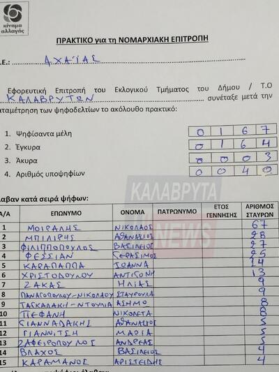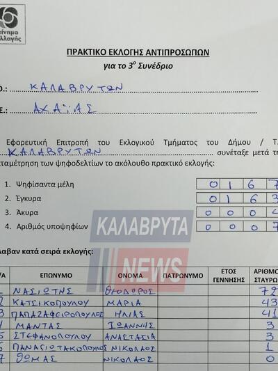 Στα Καλάβρυτα ψήφισαν 163 και για την τοπική οργάνωση πρώτευσε ο Γιάννης Μαντάς με 73 ψήφους με το 3μελές να συμπληρώνουν, η Αναστασία Στεφανοπούλου (35) και ο Νίκος Θωμάς (25).