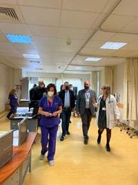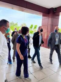 Αφού ενημερώθηκε από την Διοίκηση για όλα τα θέματα που απασχόλησαν το Νοσοκομείο την περίοδο της πανδημίας, περιηγήθηκε στον χώρο του ΤΕΠ όπου συνομίλησε με τον Δ/ντη Ιατρικής Υπηρεσίας κ. Χονδρομάρα Αθανάσιο, την Δ/ντρια-Επιστημονικά Υπεύθυνη του ΤΕΠ κ. Σταυροθανασοπούλου Αγλαΐα, τον Δ/ντη ΕΣΥ Χειρουργικής (ΜΕΘ) – Μέλος του Διοικητικού Συμβουλίου/Εκπρόσωπο των ιατρών κ. Δραγώτη Κωνσταντίνο, τον κ. Γραμματίκα Γεώργιο, Μέλος του Διοικητικού Συμβουλίου, καθώς επίσης και με άλλα διοικητικά, ιατρικά και νοσηλευτικά στελέχη του Νοσοκομείου.