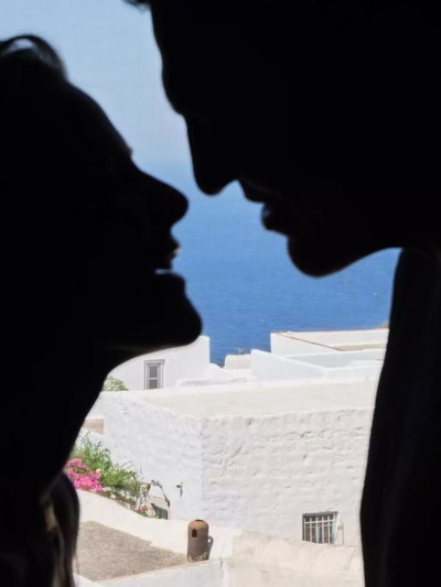 Τζένη Μπαλατσινού και Βασίλης Κικίλιας κοιτάζονται και χαμογελούν με φόντο την Πάτμο, τον αγαπημένο τους προορισμό. «Χρόνια πολλά #mykik» ήταν η λεζάντα της φωτογραφίας.