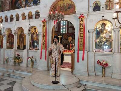 Τελέστηκε αρχιερατική Θεία Λειτουργία με αρτοκλασία, χοροστατούντος του σεβασμιότατου Μητροπολίτη Πατρών κ.κ. Χρυσόστομου, το πρωί της Τρίτης 17/5. Ο κ.κ. Χρυσόστομος εκφώνησε και το πανηγυρικό της ημέρας.