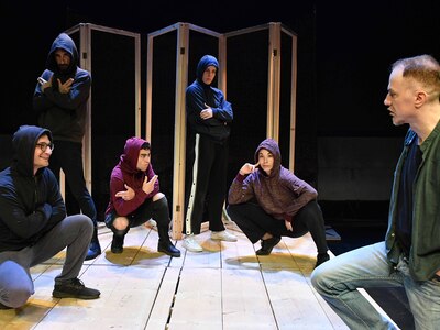 Καθηγητές και μαθητές του Λαϊκού Φροντιστηρίου, κέντρο κακοποιημένων γυναικών και φοιτητές θεατρικών σπουδών –Ατέλεια.