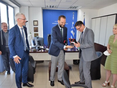 Τον Περιφερειάρχη Δυτικής Ελλάδας, Νεκτάριο Φαρμάκη, επισκέφθηκαν σήμερα Παρασκευή 27 Μαΐου 2022 οι Πρέσβεις της Ελβετίας Olaf Kjelsen και της Πολωνίας Artur Lompart στο πλαίσιο πρωτοβουλίας της Προέδρου της Κοινοβουλευτικής Ομάδας Φιλίας Ελλάδας - Ελβετίας, βουλευτού Αχαΐας, Χριστίνας Αλεξοπούλου.