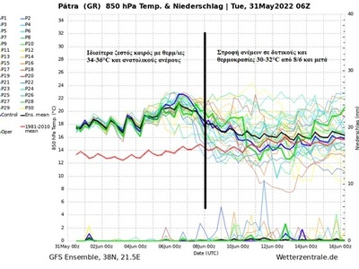 * Υδράργυρος με ιδιαίτερα θερμές διαθέσεις. Οι μέγιστες αναμένεται να διαμορφωθούν στους 34-36°C στην πόλη κατά το διάστημα Πέμπτη 2/6 έως Τρίτη 7/6. Λίγο πιο κάτω θα παραμείνουν μόνο αύριο Τετάρτη. Οι ελάχιστες θα βρεθούν κοντά στους 20°C.