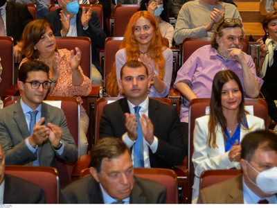 Την εμφάνισή τους στο πλάι των γονιών τους έκαναν τα δίδυμα του Κώστα Καραμανλή και της Νατάσας Παζαΐτη στο πλευρό των γονιών τους στην -πρώτη μετά από καιρό – ομιλία του πρώην πρωθυπουργού σε εκδήλωση γυναικείας οργάνωσης στο Μέγαρο Μουσικής.