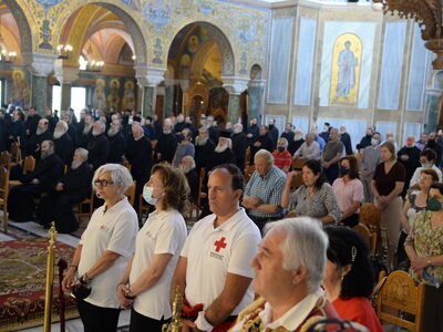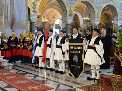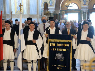 Στήν Θεία Λειτουργία προσῆλθαν καί ἐκκλησιάσθησαν ἃπαντες οἱ Κληρικοί τῆς Ἱερᾶς Μητροπόλεως Πατρῶν καί πλῆθος κόσμου, ὡς καί Ἀντιπροσωπεῖες τοπικῶν Πατριωτικῶν Συλλόγων μέ τίς ἐθνικές ἐνδυμασίες καί τά λάβαρα τῶν Συλλόγων.