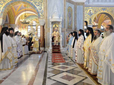 Ἡ Ἐκκλησία καί πάλι μέ τόν Σταυρό καί τήν Ἀνάσταση, μέ τήν σωτήρια διάσωση τῆς ἱστορικῆς μνήμης, ἀπό ἐκεῖ, ἀπό τό μαρτυρικό Φανάρι, ἀπό τόν οἶκον τῶν τοῦ Χριστοῦ πενήτων, ὃπου βιγλάτορας, ὁ πρῶτος τῆς Ὀρθοδοξίας καί τοῦ Γένους, ὁ Οἰκουμενικός Πατριάρχης καί οἱ συγκυρηναῖοι του, ἓως τό τελευταῖο Μοναστήρι καί Ξωκκλήσι τῆς Ὀρθοδόξου Πατρίδος μας, αἳρει τόν Σταυρό τῆς μεγάλης εὐθύνης γιά νά ὁδηγήσῃ τά παιδιά της εἰς πνευματική ἀναψυχήν.
