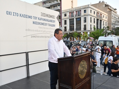 Ένα ηχηρότατο μήνυμα προς την κυβέρνηση και την 6η ΥΠΕ – Υγειονομική Περιφέρεια, έστειλε το απόγευμα της Παρασκευής 3 Ιουνίου 2022 ο Πατραϊκός λαός που, με τη συγκλονιστική του αγωνιστική παρουσία στην πλατεία Γεωργίου, είπε «Όχι» στο κλείσιμο του Καραμανδάνειου Νοσοκομείου Παίδων.