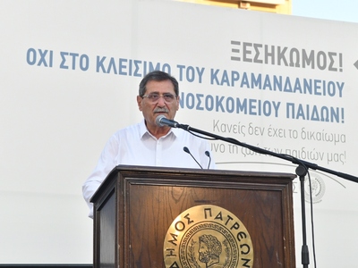 Ο Δήμαρχος Πατρέων Κώστας Πελετίδης, στην ομιλία του τόνισε ότι ο Δήμος, οι φορείς και ο λαός της πόλης δεν θα σταματήσουν τον αγώνα μέχρι να εξασφαλιστεί ότι το Καραμανδάνειο θα είναι πλήρως στελεχωμένο και εξοπλισμένο.