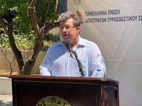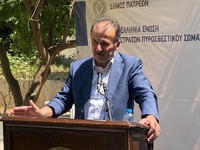 Τέλος, σύντομο χαιρετισμό απηύθυνε ο Πρόεδρος της Πανελλήνιας Ένωσης Αποστράτων Πυροσβεστικού Σώματος, Κωνσταντίνος Γιαννάκος, ο οποίος απένειμε αναμνηστική πλακέτα στο Δήμαρχο Πατρέων.