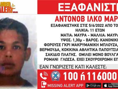 «Στις 05/06/22, πρωινές ώρες εξαφανίστηκε από την περιοχή του Γουδί, ο Αντόνοβ (επ.) Ίλκο Μάρεβ (ον.), 11 ετών, βουλγαρικής καταγωγής. Το «Χαμόγελο του Παιδιού» ενημερώθηκε για την εξαφάνιση του ανήλικου και προχώρησε στην ενεργοποίηση του μηχανισμού AMBER ALERT HELLAS κατόπιν εισαγγελικής απόφασης.