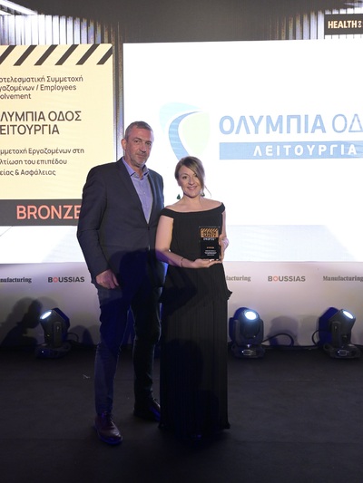 Βραβείο BRONZE στην κατηγορία “Αποτελεσματική Συμμετοχή Εργαζομένων” απέσπασε η Ολυμπία Οδός Λειτουργία στα Health & Safety Awards 2022 (Βραβεία Υγείας & Ασφάλειας), που διοργανώθηκαν για 8η χρονιά με στόχο να επιβραβεύσουν και να αναδείξουν τις καλύτερες πρακτικές στη διαχείριση Υγείας & Ασφάλειας στους εργασιακούς χώρους. Όπως αναφέρει με ανακοίνωσή της, "ο θεσμός των βραβείων προβάλει εταιρείες που δημιουργούν και διατηρούν ασφαλείς χώρους εργασίας, αναπτύσσουν κουλτούρα προληπτικής υγείας και ασφάλειας σε εργοδότες και εργαζομένους και δύνανται να αποτελέσουν παραδείγματα προς μίμηση στους κλάδους που ανήκουν.