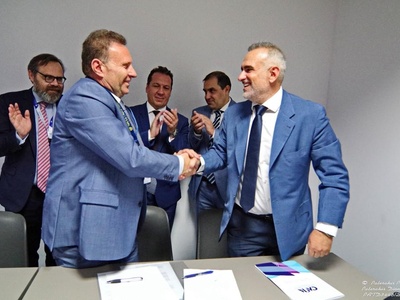 Η υπογραφή του μνημονίου πραγματοποιήθηκε από τους κ.κ. Θάνο Λιάγκο, Εκτελεστικό Πρόεδρο Δ.Σ. της ΟΛΘ Α.Ε., και Παναγιώτη Τσώνη, Διευθύνοντα Σύμβουλο και Εκτελεστικό Μέλος Δ.Σ. της ΟΛΠΑ Α.Ε., στο πλαίσιο της κορυφαίας διεθνούς ναυτιλιακής έκθεσης «Ποσειδώνια», παρουσία του κ. Ευάγγελου Κυριαζόπουλου, Γενικού Γραμματέα Λιμένων, Λιμενικής Πολιτικής και Ναυτιλιακών Επενδύσεων, και στελεχών των δύο εταιρειών.