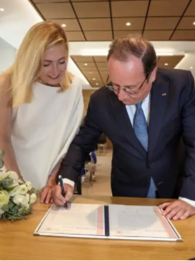 Ολάντ και Γκαγιέ ενώθηκαν με τα δεσμά του γάμου το Σάββατο σε δημαρχείο της Κορέζ, όπως αναφέρει η εφημερίδα «La Montagne», αναρτώντας στο λογαριασμό της στο Twitter μία φωτογραφία του ζευγαριού.