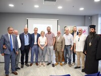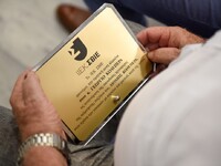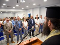 Κλείνοντας την ομιλία του, ο κος Καστρινάκης έδωσε το έναυσμα για την αποκάλυψη της αναμνηστικής πλάκας που τοποθετήθηκε στην είσοδο του αμφιθεάτρου, με τους παρευρισκόμενους να ξεσπούν συγκινημένοι σε θερμό χειροκρότημα.