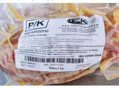 Ο Ε.Φ.Ε.Τ. και ειδικότερα η Περιφερειακή Διεύθυνση Κεντρικής Μακεδονίας, κατά τη διενέργεια ελέγχων στο πλαίσιο του Προγράμματος «Επίσημος Έλεγχος Μικροβιολογικών Κριτηρίων Ασφάλειας Τροφίμων» έτους 2022, προέβη σε δειγματοληψία παρασκευάσματος κρέατος με τα στοιχεία: ΡΟΛΟ ΚΟΤΟΠΟΥΛΟ 1κιλ. ΚΤΨ., με ημερομηνία κατάψυξης 30/11/2021 και ανάλωσης 30/11/2022, που παράγεται από την εταιρεία «ΒΙΟΤΕΧΝΙΑ ΕΠΕΞΕΡΓΑΣΙΑΣ ΚΡΕΑΤΩΝ (ΒΕΚ) ΚΙΟΥΡΤΣΙΔΗ ΑΒΕΕ» και σε συνεργασία με τα Εργαστήρια Δοκιμών και Ερευνών Τροφίμων Θεσσαλονίκης του Ε.Φ.Ε.Τ., διαπιστώθηκε η παρουσία του παθογόνου μικροοργανισμού Salmonella spp.