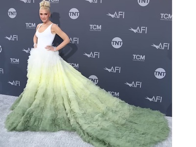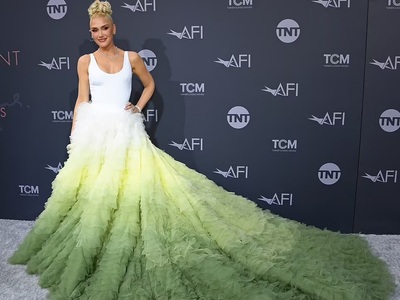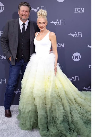 Όμως και η ντίβα της ποπ- ροκ Γκουέν Στεφάνι στα 52 της φάνταζε σαν κοριτσάκι. Με απίστευτα θεαματικό outfit (επάνω λευκή φανέλα και κάτω φούστα με άπειρα βολάν σε ντεγκραντέ εφέ και με μεγάλη «ουρά») ξεσήκωσε τα φλας. Κότσος και πολλά διαμάντια συμπλήρωσαν την εμφάνισή της στο πλευρό του 45χρονου συζύγου της Μπλέικ Σέλτον . Μάλιστα συγκινήθηκε πολύ για την παρουσία της Τζούλι Αντριους, «Δεν θα ήμουν εδώ χωρίς την έμπνευσή σου Τζούλι Αντριους. Σε ευχαριστώ για τη Μελωδία της Ευτυχίας» είπε στο βάθρο.