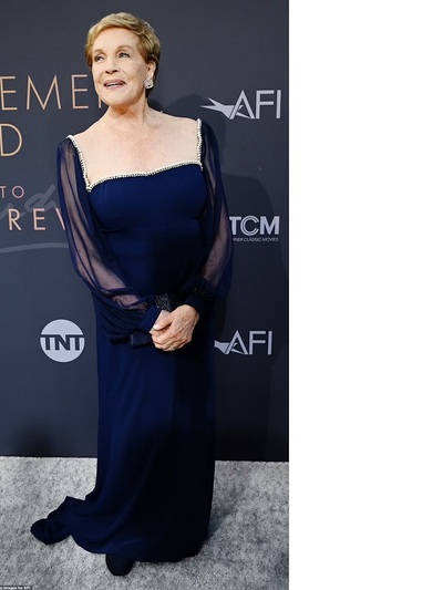 Αίσθηση έκανε η Τζούλι Αντριους, ο ζωντανός μύθος του Χόλιγουντ στο Dolby Theater του Λος Αντζελες όπου και τιμήθηκε στο πλαίσιο του AFI Life Achievement Awards Gala. Η 86χρονη βρετανοαμερικανίδα, μεγάλη κυρία του θεάματος, έδωσε το παρόν με στενή μπλε τουαλέτα με διάφανα μανίκια, πραγματικά γοητευτική στην ωριμότητά της αλλά αναμφίβολα σαν να ήταν τουλάχιστον είκοσι χρόνια νεώτερη. Βετεράνοι της οθόνης συγκεντρώθηκαν για να τη χειροκροτήσουν υμνώντας την προσφορά της στο θέατρο και το σινεμά και υπογραμμίζοντας την προσωπική της χάρη και τη μαγευτική σοπράνο φωνή της. Η Αντριους έκανε το ντεμπούτο της στο West End το 1948 και στο Broadway το 1954. Στις καρδιές του παγκόσμιου κοινού μπήκε παίζοντας στα αξεπέραστα, παραμυθένια μιούζικαλ «Η μελωδία της Ευτυχίας» και «Μέρι Πόπινς». Επαιξε όμως και σε άλλα φιλμ όπως του Μπλέικ Εντουαρντς που ήταν και σύζυγός της ή του μοναδικού Αλφρεντ Χίτσκοκ. Τελευταία την έχουμε δει στο «Ημερολόγιο μιας πριγκίπισσας» ενώ πολλοί δεν γνωρίζουν ότι είναι η αριστοκρατική«φωνή» της Lady Whistledown στο Bridgerton. Για χάρη της τραγούδησαν live στο gala οι ηθοποιοί Στιβ Καρέλ, Εκτορ Ελιζόντο, Σύνθια Ερίβο ενώ παρευρέθηκαν οι ηθοποιοί που έπαιξαν τα παιδιά στη «Μελωδία της Ευτυχίας».