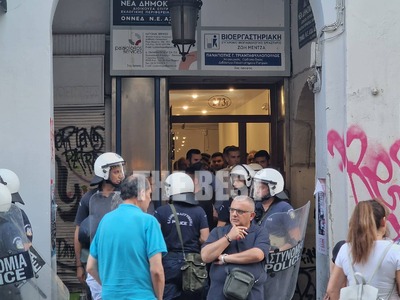 Μεγάλη σστυνομική δύναμη βρίσκεται στο σημείο και παρακολουθεί διακριτικά, αλλά ο υπουργός δεν φάνηκε ενώ ο μόνος που πέρασε στα γραφεία της ήταν ο Γραμματέας της Ν.Δ. Παύλος Μαρινάκης.