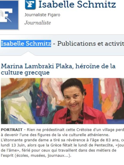 Ιδιαίτερα τιμητικό δημοσίευμα για την προσφορά της Μαρίνας Λαπράκη - Πλάκα στον πολιτισμό, από την εφημερίδα Figaro