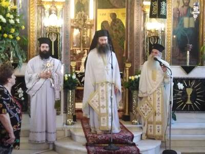 Το πρωί της Κυριακής στην Θεία Λειτουργία παρευρέθηκε ο Αρχιμανδρίτης π. Γερβάσιος Παρακεντές.