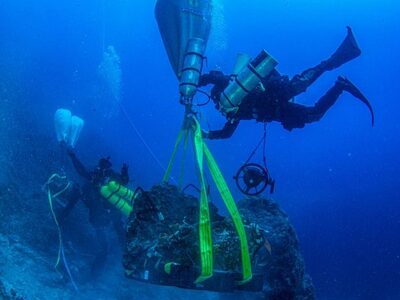 Η αποστολή ξεκίνησε με την ανέλκυση ογκωδών βράχων βάρους πολλών τόνων, οι οποίοι κάλυπταν τμήμα του ναυαγίου.