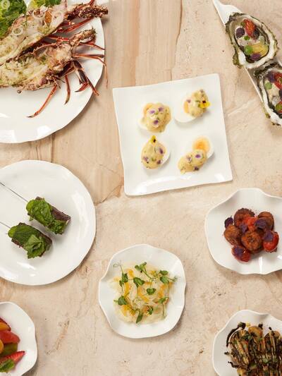 Στο εστιατόριο Louis Vuitton στο Saint Tropez, τα πιάτα δεν ξεφεύγουν πολύ και από την γαλλική gourmet κουζίνα. Υπάρχουν διάφορα πρωτότυπα και με φαντασία. Από το ekiben, που ήταν ένα γιαπωνέζικο γεύμα που συνήθως το προσέφεραν στα τρένα, αλλά μέχρι και τάκος μελιτζάνας, έως prime rib και ελαφρά tapas.