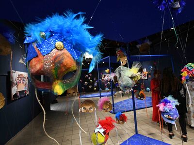 Στην εκδήλωση πραγματοποιήθηκαν τα εγκαίνια της έκθεσης μάσκας όπου μικροί και μεγάλοι είδαν τις εντυπωσιακές καρναβαλικές μάσκες με έκδηλο τόσο τον καρναβαλικό όσο και τον καλλιτεχνικό χαρακτήρα, που δημιούργησαν κατά τη διάρκεια των εργαστηρίων και εκτέθηκαν στην αίθουσα εκδηλώσεων-καλλιτεχνικών δράσεων των Παλαιών Σφαγείων.