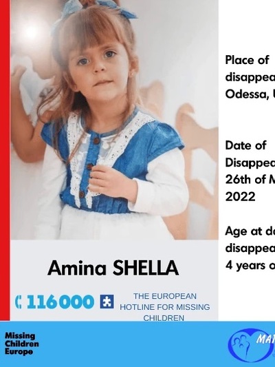 Η ανακοίνωση του Χαμόγελου του Παιδιού: «Το Χαμόγελο του Παιδιού» ενημερώθηκε σήμερα, 23/6/2022, από τον συνεργαζόμενο φορέα στην Ουκρανία «Magnolia» της Ευρωπαϊκής Ομοσπονδίας για τα Εξαφανισμένα και Σεξουαλικά Κακοποιημένα Παιδιά (Missing Children Europe – ΜCE) για την εξαφάνιση της Αμίνα (ον) Σέλλα (επ), 4 ετών, ουκρανικής καταγωγής, και προέβη στην αναδημοσίευση της αφίσας της εξαφάνισής της.