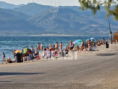 Γέμισε από λουόμενους η Πλαζ την Τετάρτη το απόγευμα.