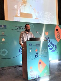 Ειδικότερα,εισηγητές ήταν οι Δρ. Ηλίας Βαλιάκος, Ερευνητής, Έδρα UNESCO για τα Γεωπάρκα & τη Βιώσιμη Ανάπτυξη των Νησιωτικών και Παράκτιων Περιοχών, Τμήμα Γεωγραφίας, Πανεπιστήμιο Αιγαίου, Ελένη Μπαζίνη, Αρχαιολόγος - Κοινωνική Ανθρωπολόγος, Υπουργείο Πολιτισμού και Αθλητισμού, Διεύθυνση Νεότερης Πολιτιστικής Κληρονομιάς -Τμήμα Άυλης Πολιτιστικής Κληρονομιάς και Διαπολιτισμικών Θεμάτων, Δρ. Μαρία Αργυροπούλου, ΕΔΙΠ, Τμήμα Διοίκησης Τουρισμού, Πανεπιστήμιο Πατρών, Σοφία Χρυσοπούλου, ΚΕΔΗΠ-Καρναβάλι Πάτρας, Νικόλαος Ζούρος, Πρόεδρος Παγκόσμιου Δικτύου Γεωπάρκων UNESCO, Πρόεδρος Ελληνικής Επιτροπής Γεωπάρκων της Ε.Ε.Ε. UNESCO, Διευθυντής του Μουσείου Φυσικής Ιστορίας Απολιθωμένου Δάσους Λέσβου, Ελένη Κουμούτσου, Προϊσταμένη Μ.Δ. Εθνικού Πάρκου Χελμού – Βουραϊκού & ΠΠ Βόρειας Πελοποννήσου (Ο.ΦΥ.ΠΕ.Κ.Α.), Συντονίστρια Παγκόσμιου Γεωπάρκου UNESCO Χελμού – Βουραϊκού, Βέρα Δηλάρη, Εθνική Συντονίστρια του Προγράμματος Συνδεδεμένων Σχολείων UNESCO ASPnet, ΥΠΕΠΘ, Πωλίνα Μπιθαρά, Υπεύθυνη Προγράμματος «Πόλεις Μάθησης UNESCO», Ελληνική Εθνική Επιτροπή για την UNESCO.
