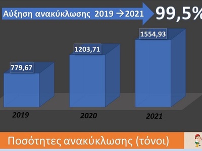Πρέπει να υπάρχει αξιολογικό αποτέλεσμα σε ό,τι κάνουμε. Η Ελληνική Εταιρεία Ανακύκλωσης έχει δώσει τα επίσημα στοιχεία που δείχνουν τον διπλασιασμό του ποσοστού ανακύκλωσης στον Δήμο Αιγιαλείας από το 2019 έως 2021 (99,5%). Πρόκειται για πολύ μεγάλη επιτυχία και σε εθνικό επίπεδο. Χρησιμοποιούμε όλες τις ορθές πρακτικές, ενώ αντιγράφουμε και ενέργειες αποτελεσματικές που αξιοποιούν άλλοι δήμοι και φορείς. Τα τελευταία δύο χρόνια δημιουργήθηκαν 65 σημεία ανακύκλωσης σε όλο το Δήμο Αιγιαλείας. Το 2021 ήταν ένας χρόνος-σταθμός για το κομμάτι της ανακύκλωσης και φιλοδοξούμε φέτος να φτάσουμε 2000 τόνους, ήδη τα μαζεύουμε με 3 οχήματα, έχουν αυξηθεί ραγδαία οι διαχειριστικές δυνατότητες συλλογής ανακυκλωσίμων συσκευασίας.