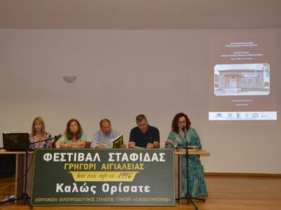Κατά το χαιρετισμό του ο Γρηγόριος Φαρμακόπουλος, πρόεδρος του Συλλόγου Γρηγόρι και εκ μέρους του Διοικητικού Συμβουλίου, αναφέρθηκε στις διαχρονικές και πλέον θεσμοθετημένες εκδηλώσεις για τη Σταφίδα που διοργανώνει ήδη για τρεις δεκαετίες ο Σύλλογος και δήλωσε υπερήφανος για τις εκδόσεις αυτές γιατί φανερώνουν την αξία της Σταφίδας από τη μία μεριά και διαδίδουν από την άλλη την ταυτότητα του χωριού Γρηγόρι και της Αιγιάλειας εκτός της πόλης και του νομού. Αφού ευχαρίστησε όλους και όλες που παρακολούθησαν τις εργασίες της Ημερίδας, ενημέρωσε το κοινό για τις επερχόμενες εκδηλώσεις του Συλλόγου με θεατρική παράσταση, επίδειξη μαγειρικής και ζαχαροπλαστικής με βασικό υλικό τη Σταφίδα και λαϊκό γλέντι στην κεντρική εκδήλωση με τον Γιώργο Βελισσάρη.