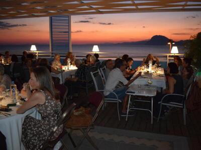 Απολαμβάνοντας τη δύση του ηλίου, τον Πατραϊκό κόλπο, το λιμάνι και αργότερα το φεγγάρι, το φωτισμένο κάστρο από τον 7ο όροφο του Αστέρα δίπλα στην πισίνα με τη διακριτική μουσική επένδυση της βραδιάς να ολοκληρώνει την υπέροχη ατμόσφαιρα.