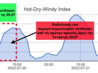 Μέχρι αυτήν την πρόβλεψη τα πράγματα είναι αισιόδοξα, όμως όπως αναφέρεται: «οι πυρομετεωρολογικές συνθήκες αναμένεται να επιδεινωθούν εκ νέου από τις πρώτες πρωινές ώρες 04:00/05:00 (Τετάρτη 20.07.2022), οπότε και περιμένουμε εκ νέου ενίσχυση της έντασης των ανέμων και αύξηση της ευφλεκτότητας της νεκρής καύσιμης ύλης έως και τις μεσημβρινές ώρες της Τετάρτης 20.07.2022.