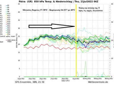 Διατήρηση των πολύ υψηλών μέγιστων θερμοκρασιών (~36-39°C κατά Μ.Ο.) καθ' όλη την διάρκεια της ερχόμενης εβδομάδας, με ενδείξεις αποκλιμάκωσης να φαίνονται προς τα τέλη της - αρχές της μεθεπόμενης.