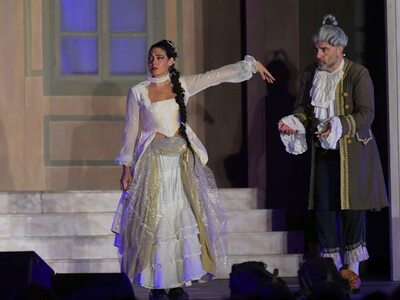Mέσα σε μια μαγευτική ατμόσφαιρα, απόλαυσαν το θεατρικό έργο «Ο Κουρέας της Σεβίλλης» και καταχειροκρότησαν τους ηθοποιούς κι όλους τους συντελεστές της παράστασης που δόθηκε στα πλαίσια των εκδηλώσεων του Διεθνούς Φεστιβάλ.