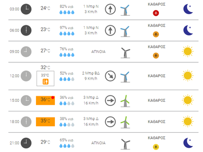Θερμοκρασία: Από 20 έως 36 και κατά τόπους 37 βαθμούς Κελσίου.