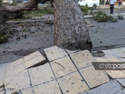 Όπως φαίνεται στις φωτογραφίες του cretapost πρόκειται για ένα τεράστιο δέντρο το οποίο κλείνει και τα δύο ρεύματα της λεωφόρου Δημοκρατίας ενώ από την εκρίζωση έσπασαν και οι πλάκες του πεζοδρομίου.