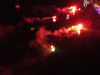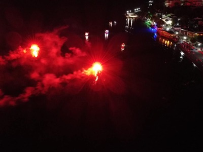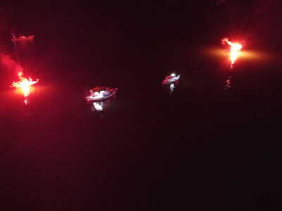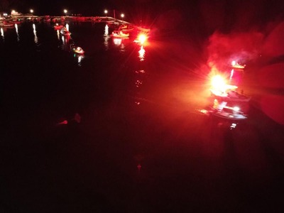 Δεκάδες βάρκες με αναμμένα καπνογόνα και πολλούς επιβάτες διέσχιζαν τα ήρεμα νερά του Αμβρακικού.