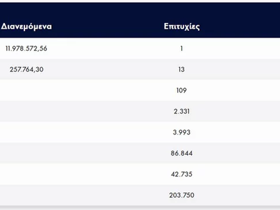 Τα 11.978.000 για την ακρίβεια, κέρδισε ένας παίκτης που προέβλεψε σωστά τους 5+1 τυχερούς αριθμούς.