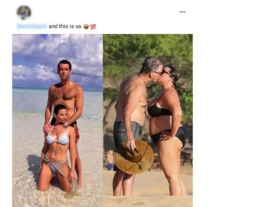 Στη μία εικόνα παρουσιάστηκε το ζευγάρι τη δεκαετία του ’90 – όταν ο Μπρόσναν ήταν στο απόγειο της φήμης του Τζέιμς Μποντ – και στην άλλη έδειξε το ζευγάρι στη σημερινή εποχή. Κάτω από τη συγκεκριμένη ανάρτηση έγιναν εκατοντάδες σχόλια, που ανέφεραν το πόσο πολύ άλλαξε η σιλουέτα της Σμιθ, ενώ κάποιος χρήστης της προσέφερε χειρουργική επέμβαση απώλειας βάρους.