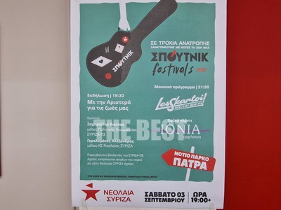 Στις 3 Σεπτεμβρίου στην Πάτρα το φεστιβάλ της Νεολαίας ΣΥΡΙΖΑ, ΣΠΟΥΤΝΙΚ
