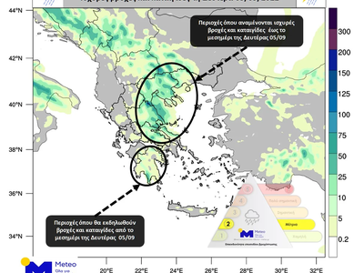 Από σήμερα το βράδυ (04-09-2022) μέχρι και τις πρωινές ώρες της Δευτέρας (05-09-2022) ισχυρές βροχές και καταιγίδες προβλέπονται στη δυτική και κεντρική Μακεδονία.