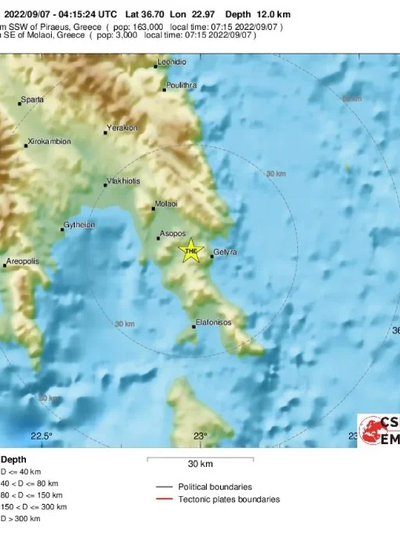 Το Ευρωμεσογειακό Σεισμολογικό Ινστιτούτο ανακοίνωσε ότι το μέγεθος του σεισμού στη Μονεμβασιά ήταν 3,5 βαθμοί της Κλίμακας Ρίχτερ και το εστιακό βάθος στα 12χλμ.