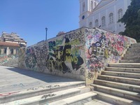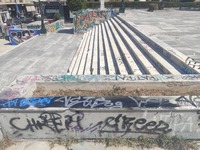 Ωστόσο ο περιβάλλων χώρος μόνο καλαίσθητος και καθαρός δεν είναι. Σπασμένοι λαμπτήρες σε φωτιστικά,γραμμένα συνθήματα σε διάφορα σημεία, σπασμένα μάρμαρα σε σκαλιά ή ανασηκωμένα τμήματα, με κίνδυνο να προκληθεί ατύχημα. Αυτά είναι τα στοιχεία που συνθέτουν εν πολλοίς το σκηνικό ενώ διατυπώνονται παράπονα για την καθαριότητα της πλατείας και γενικότερα τον ευπρεπισμό της.