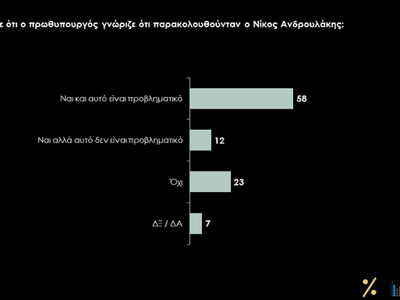 Τέλος, για την πλειονότητα (70%), ο πρωθυπουργός γνώριζε ότι παρακολουθούνταν ο Νίκος Ανδρουλάκης. Εν τούτοις, η υπόθεση των παρακολουθήσεων καταγράφεται μεταξύ των λιγότερο σημαντικών θεμάτων της περιόδου, απασχολώντας – και μάλιστα όχι με ιδιαίτερη ένταση πλέον – μια μικρή μόνο μερίδα κεντροαριστερών και αριστερών ψηφοφόρων.